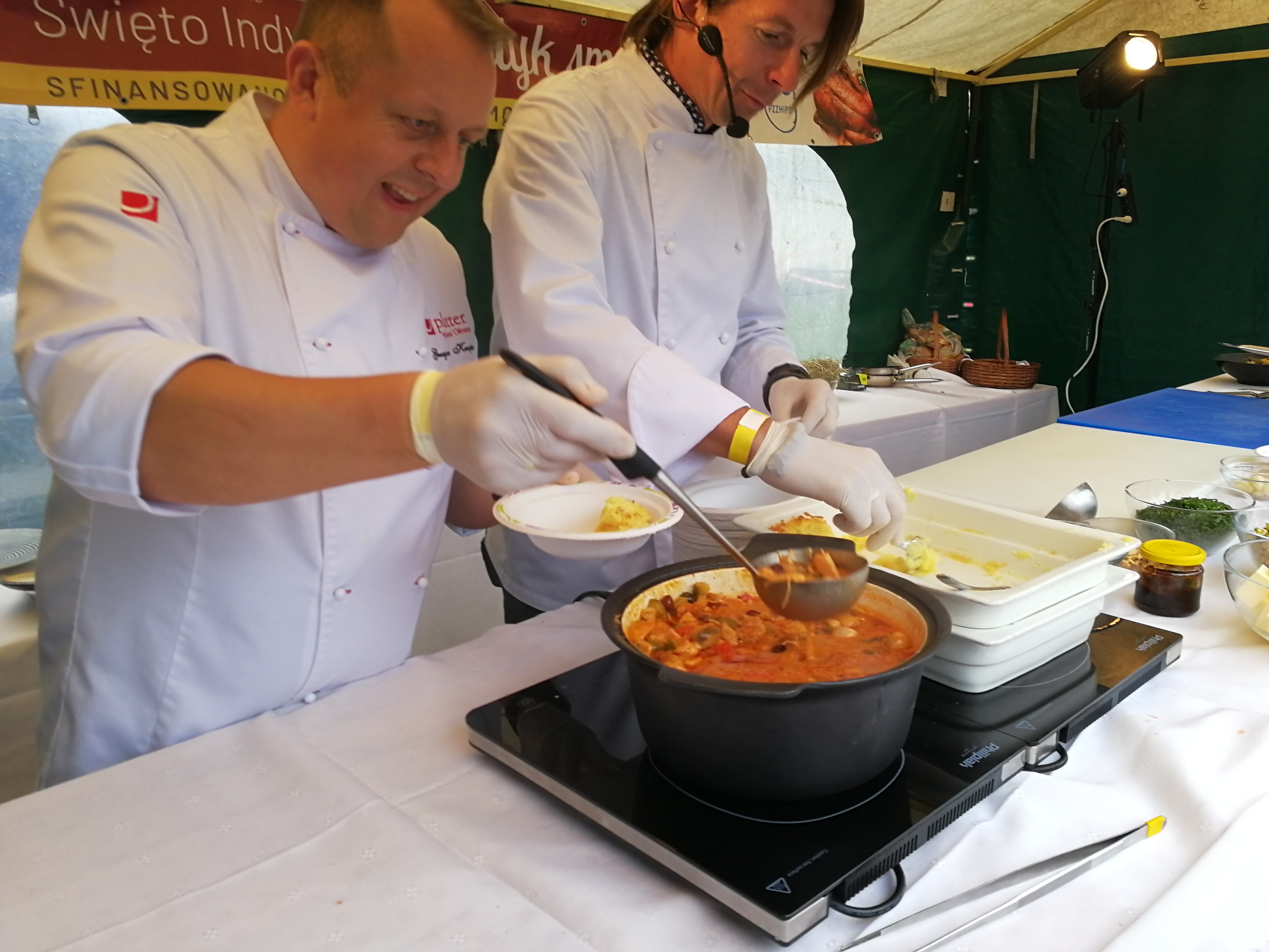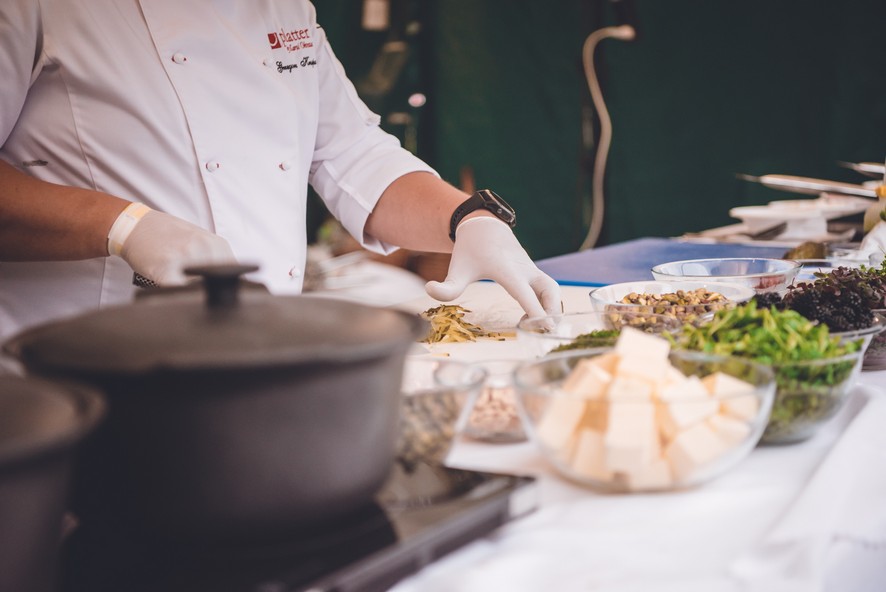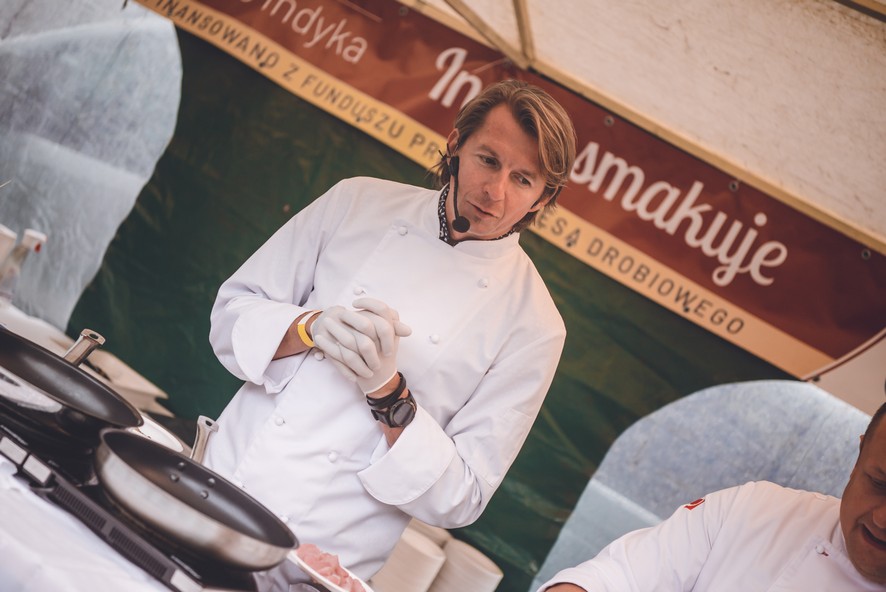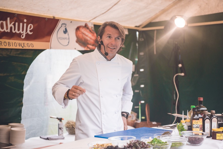 Przybyli na imprezę mogli podziwiać na żywo wykonywanie potraw przez znanego kucharza Karola Okrasę i słuchać przy tym pięknych opowieści kulinarnych w jego wykonaniu.