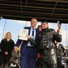Pan Burmistrz Miasta Mrągowo otrzymał od organizatorów tj. PZZHiPD w prezencie kask motocyklowy, który być może zapoczątkuje jego zainteresowanie motocyklami.