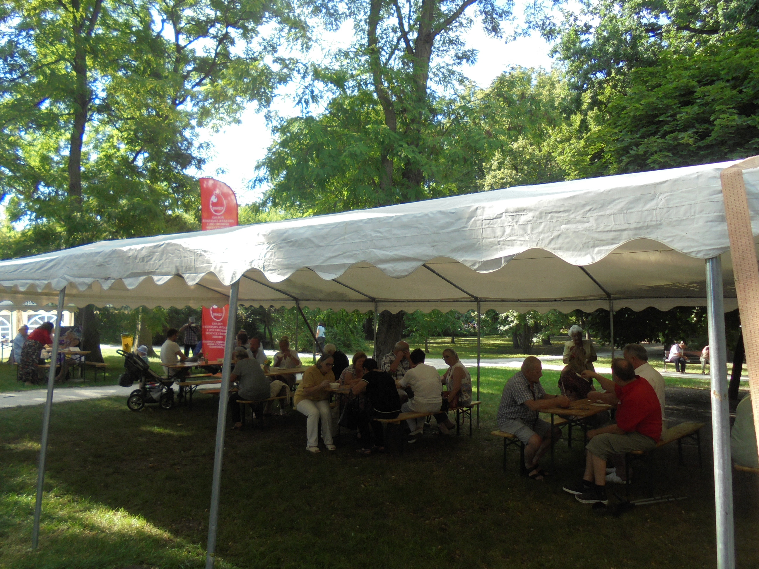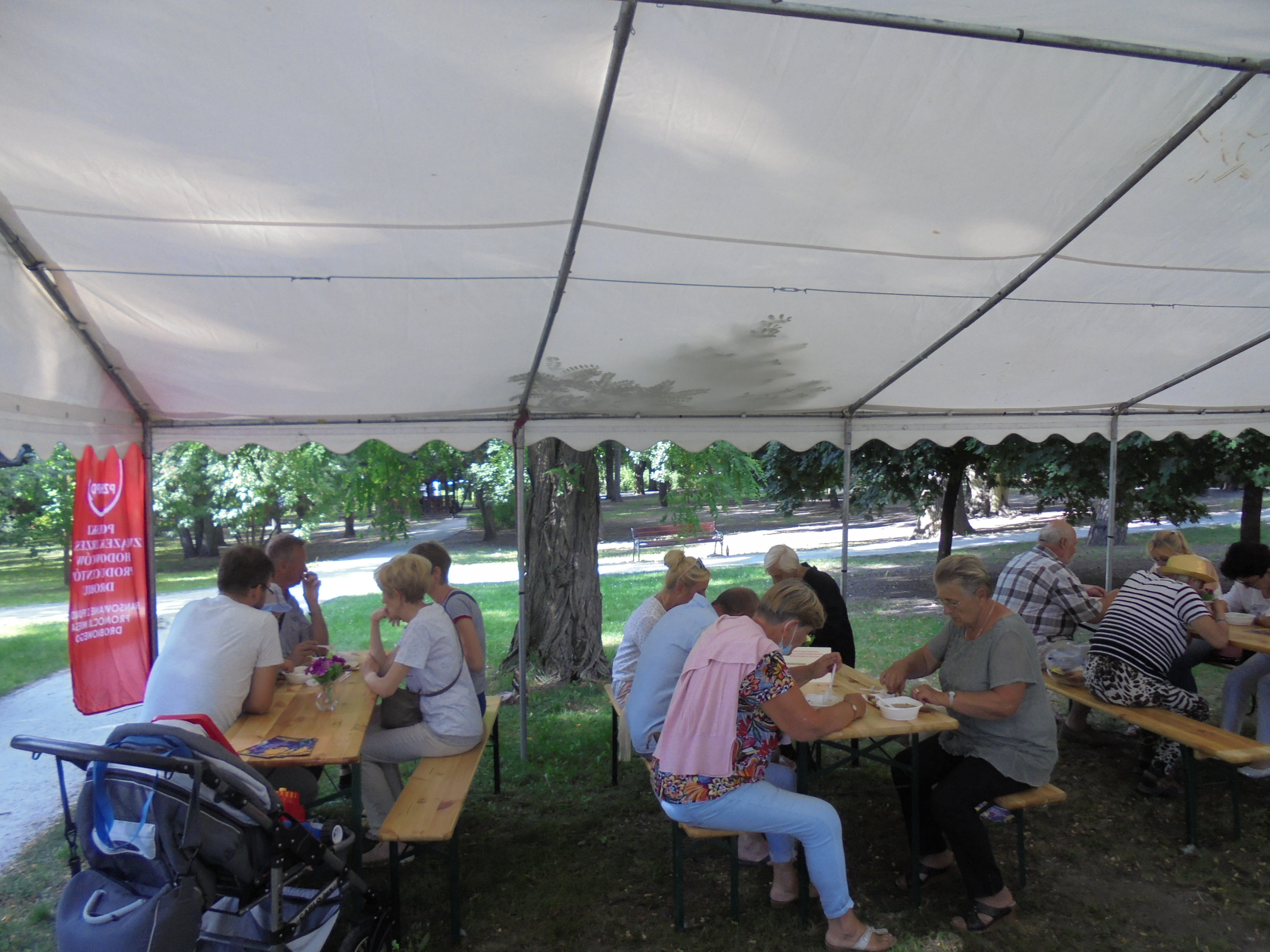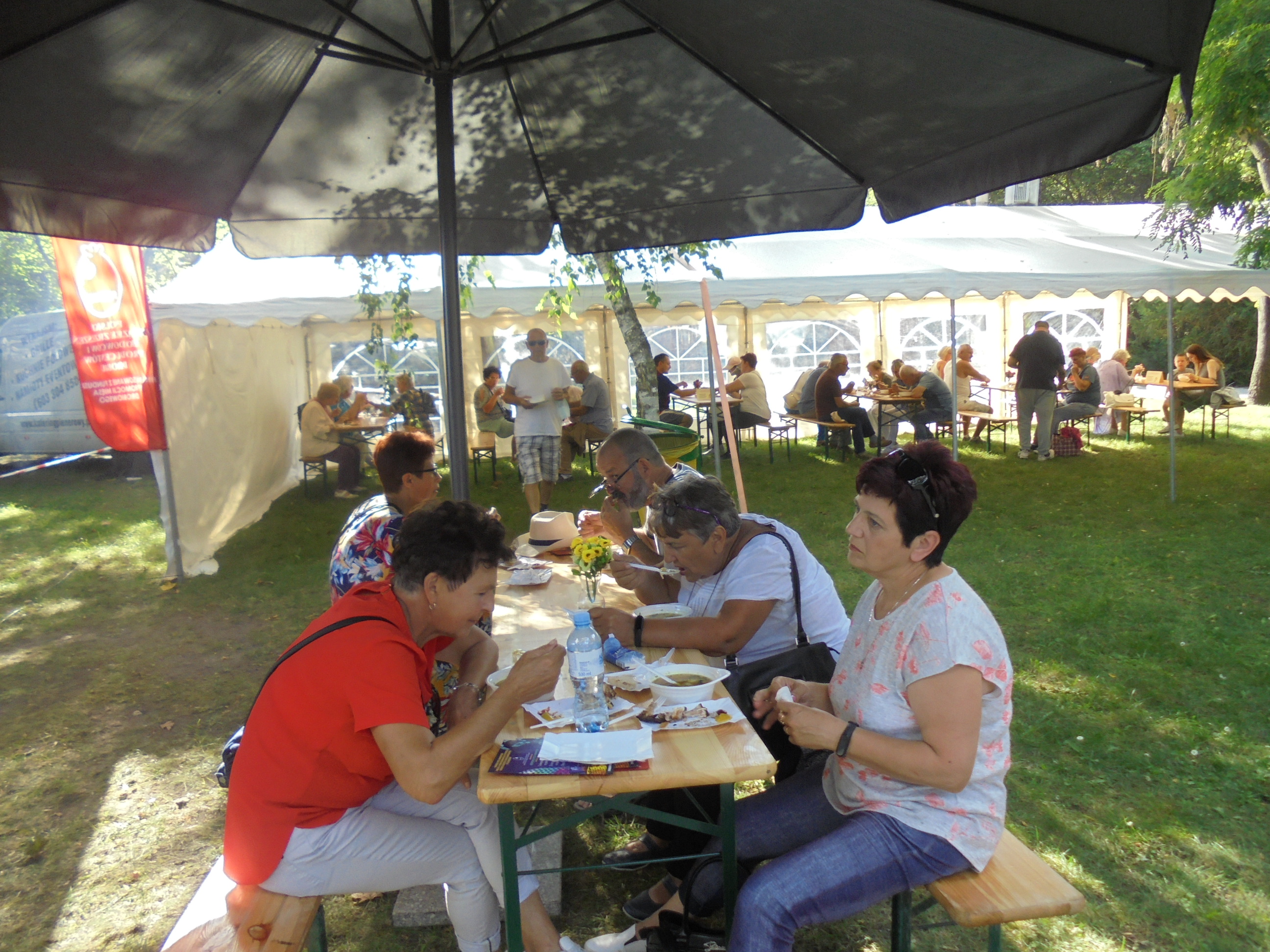 - degustację potraw w namiotach i zaaranżowanej przestrzeni tj. ogródek z parasolami, stołami z wyposażeniem